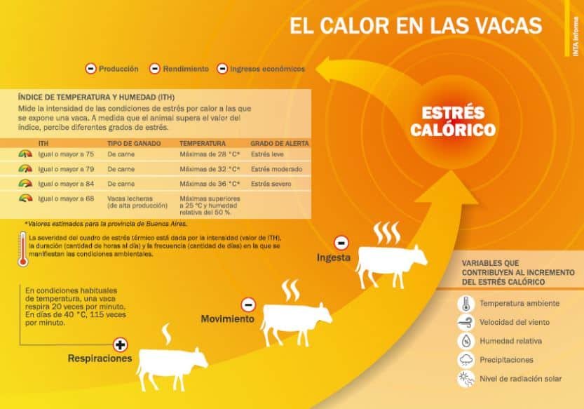 Desde el INTA Rafaela recomiendan prestar atención a señales como menor acercamiento al comedero, reducción del consumo, aumento del tiempo de permanencia de pie, mayor tasa respiratoria y caída del tiempo de rumia. “Es clave intervenir antes de que veamos a las vacas agitadas o jadeando”, subrayó Frossasco.
