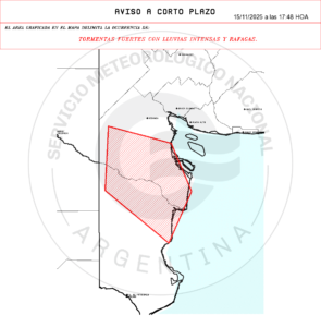 - Medidas de protección: 1- Permanecé en construcciones cerradas como casas, escuelas o edificios públicos. 2- Desconectá los electrodomésticos y cortá el suministro eléctrico si ingresa agua. 3- Alejate de zonas inundables y no ingreses en calles anegadas. 4- Mantenete alejado de artefactos eléctricos y evitá el uso de teléfonos con cable. 5- Si estás al aire libre, buscá refugio inmediato en un edificio, casa o vehículo cerrado. 6- Para minimizar el riesgo de ser alcanzado por un rayo, no permanezcas en playas, ríos, lagunas o piletas.