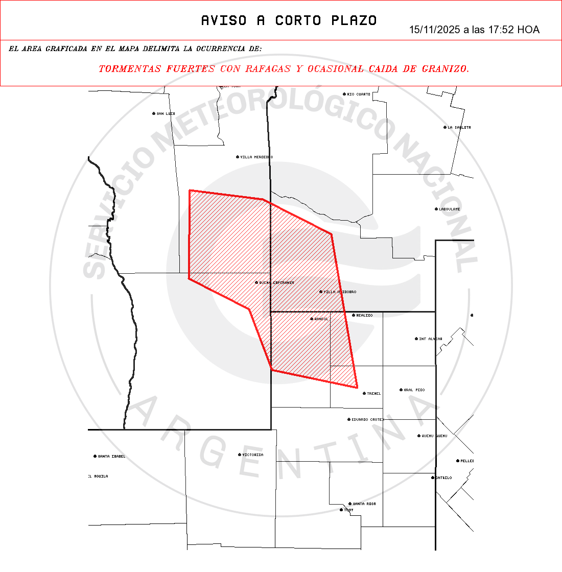 TORMENTAS FUERTES CON RÁFAGAS Y OCASIONAL CAÍDA DE GRANIZO.