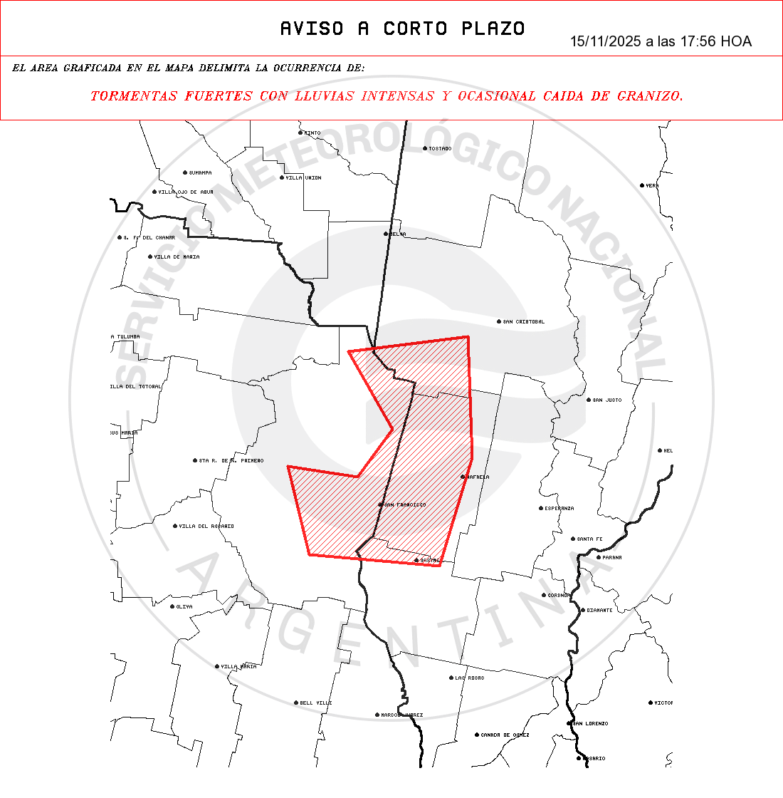 TORMENTAS FUERTES CON LLUVIAS INTENSAS Y OCASIONAL CAÍDA DE GRANIZO.