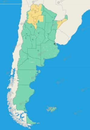 Catamarca: Ambato – Ancasti – Capayán – Capital – El Alto – Fray Mamerto Esquiú – La Paz – Paclín – Santa Rosa – Valle Viejo – Zona serrana de Pomán – Zona de monte de Andalgalá – Zona de monte de Belén – Zona de monte de Pomán – Zona de monte de Santa María – Zona de monte de Tinogasta – Puna de Tinogasta – Puna de Antofagasta de la Sierra – Puna de Belén – Puna de Cafayate – Puna de San Carlos – Puna de Santa María – Puna de Tafí del Valle – General Alvear – Paso de los Libres – San Martín – Santo Tomé