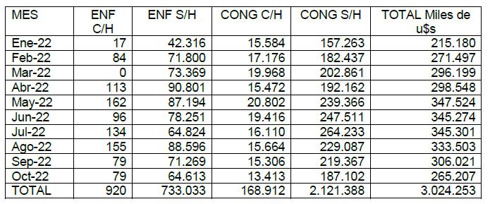 “En los primeros diez meses del corriente año se acumularon volúmenes exportados dentro de esta partida por 84,7 mil toneladas, (-2,4%) con respecto a las 86,8 mil toneladas que habían sido embarcadas entre enero y octubre del año pasado. El valor obtenido en el acumulado de los primeros diez meses de 2022 asciende a 169 millones de dólares; un (-3,0%) con respecto a los 174,1 millones obtenidos entre enero y octubre de 2021”, concluyó el Presidente del Consorcio ABC.