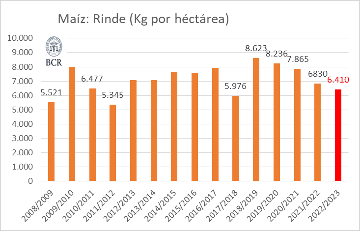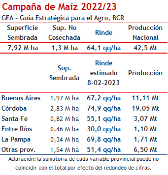 Con este volumen estimado (42,5 Mt), casi un 17% menos de cosecha que hace un año atrás, cosecha también afectada por la falta de agua. El área que no será cosechada como grano sube un 30% por la falta de agua, y se estima en 1,3 M ha.