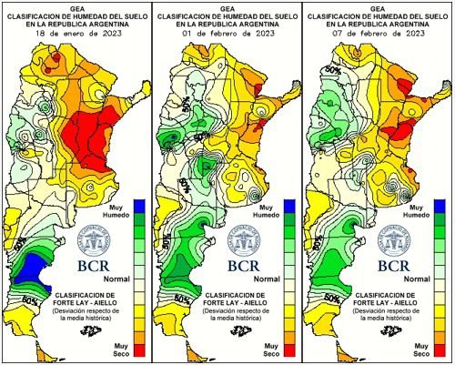 “Una sucesión de eventos generosos, aunque de dispar volumen y cobertura se alternaron desde el 19 de enero (del 2023). Incluso continuaron en el inicio del nuevo mes”, explica Aiello. Esta vez, los cambios fueron en una escala menor y la mejora duró mucho menos que en el 2021. Por eso, lamentablemente, desde mediados de la semana pasada vuelven a verse cultivos estresados. Y sin lluvias importantes a la vista hasta dentro de 10 a 15 días y transitando una nueva ola de calor, los ánimos del sector han vuelto al desánimo.
