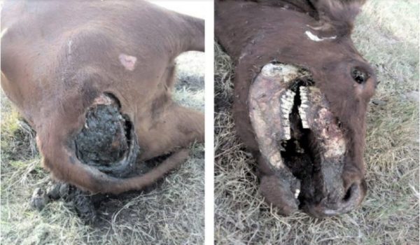 A la vaquillona le faltan partes de la cola y la cara y los cortes parecen tener una precisión quirúrgica. Según la productora, lo llamativo es que, “pese a la rodean moscas, la carne no se agusana”.