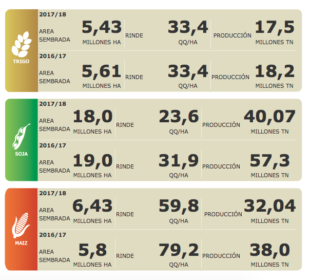En Entre Ríos, según el SIBER de la Bolsa de Cereales de Entre Ríos, un nuevo ajuste hecho sobre la superficie implantada con soja de primera resta 100 mil ha. De esta manera se considera que Entre Ríos, en este ciclo 2017/18, ha cultivado 1 millón de ha de soja de primera y 280 mil de segunda. Los rindes están por debajo de lo esperado en esta primera tanda cosechada. Considerando estos resultados y los malos diagnósticos que pesan sobre las sojas de segunda, se estima un rinde provincial de 11 quintales para la oleaginosa.