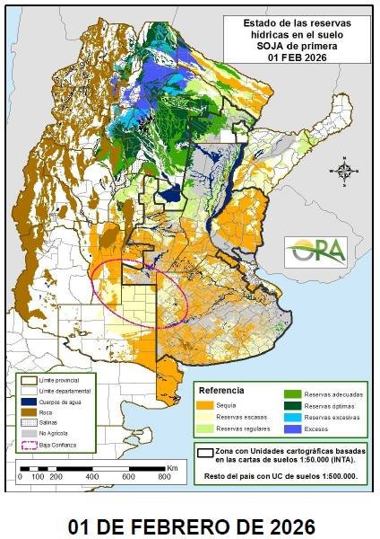 El escenario se repite en Entre Ríos, sur de Santa Fe y sur de Córdoba, donde la falta de milímetros mantiene la humedad del suelo en niveles ajustados.