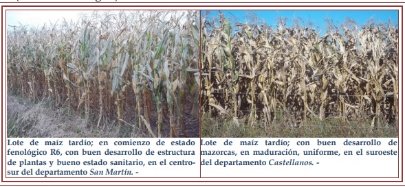 Los cultivares de maíz tardío (de segunda), continuaron su desarrollo a estados reproductivos sin mayores inconvenientes, entrando en la recta final de su ciclo y dependiendo fundamentalmente de la humedad relativa ambiente, que regularía la humedad de grano y así, las posibilidades del comienzo de la cosecha, en los próximos días.