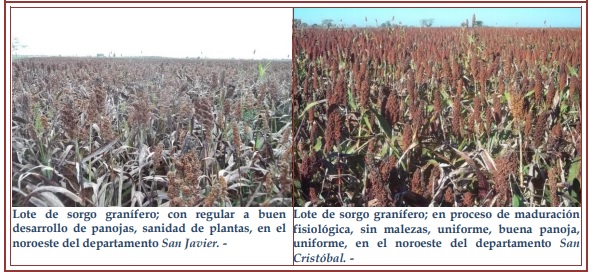 Al igual que los otros cultivos se detuvo el ritmo del proceso de cosecha del sorgo granífero, ante las condiciones climáticas desfavorables y las precipitaciones registradas. Con el mejoramiento de las mismas, lentamente se reanudó la recolección, de acuerdo a las características de los pisos de los distintos predios y la humedad del grano.