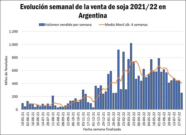 Las ventas semanales de soja comenzaron a perder intensidad desde fines de junio.