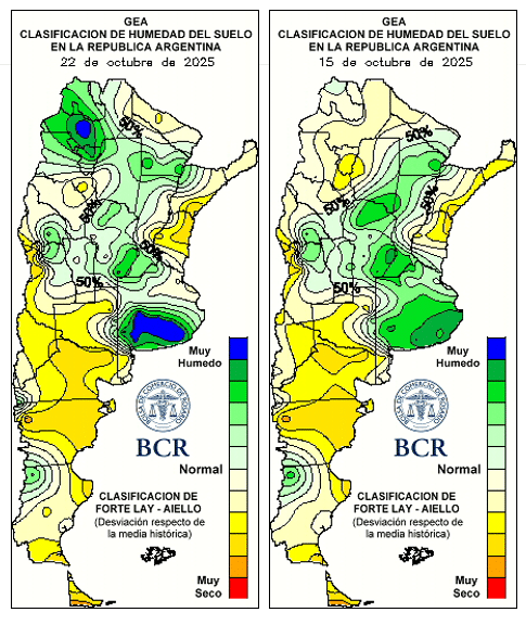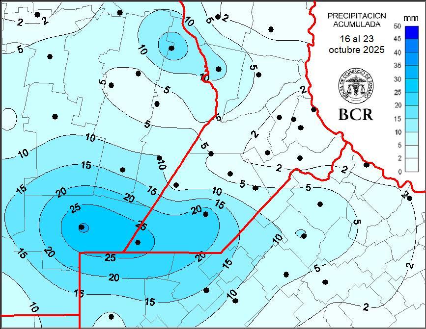 Mientras tanto, el trigo transita la etapa de llenado de grano con reservas hídricas ajustadas. En las últimas dos semanas, el 75% de la región núcleo recibió menos de 10 mm, y los técnicos advierten que “si bien se ven buenos cuadros, el llenado de espigas necesita agua urgente”. Las esperadas lluvias llegarían en los próximos días, aunque nuevamente se pronostican heladas agronómicas con mínimas de 0 a 5°C, lo que genera incertidumbre sobre el rendimiento final.