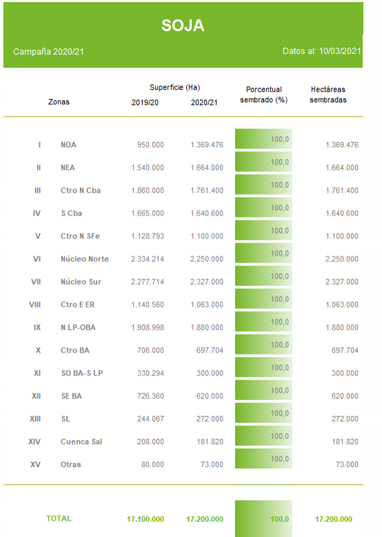 Paralelamente, sobre el norte del país, la falta de precipitaciones sobre el NEA comienza a encender las primeras alarmas, especialmente sobre la región sudoeste del Chaco. A la fecha, los cuadros más adelantados inician su llenado de granos (R5), mientras aguardan por lluvias que frenen el deterioro.