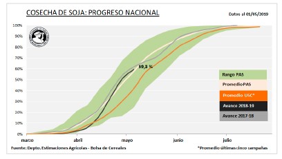 Buenos avances de cosecha de soja se relevaron desde nuestro informe previo en el centro y sur del área agrícola. La recolección se concentró en las provincias de Córdoba, Buenos Aires y Santa Fe, tanto sobre lotes de primera como de segunda ocupación. A la fecha, el avance de cosecha se ubica en el 59,3 % de las 17.700.000 Ha sembradas la campaña en curso. El rinde medio nacional de 37,4 qq/Ha, nos permite mantener la actual proyección de producción de 55.000.000 Tn. Hacia el norte del país, las precipitaciones continúan demorando las labores sobre los cuadros aún en pie. De persistir estas condiciones, podrían comenzar a registrarse pérdidas de rinde por desgrane.