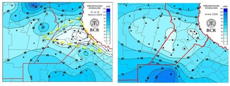 Durante la primera parte de febrero se registraron lluvias muy variables. Donde sí hubo aportes, los acumulados oscilaron entre 30 y 90 mm, acercándose en algunos casos al promedio histórico mensual de 105 mm.