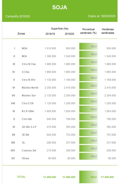 El 58,1% de la soja total se encuentra en el periodo crítico para la definición del rendimiento, mientras que un 97,4% mantiene una condición hídrica entre optima y adecuada. La proyección de producción se mantiene en 53,1 MTn.