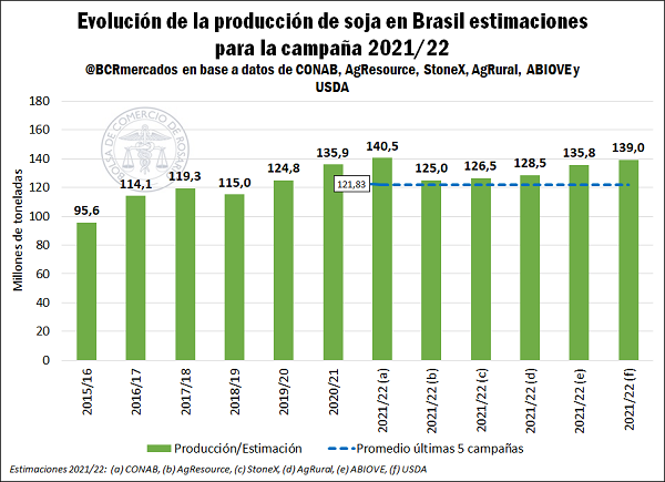 Estos movimientos, como se dijo previamente, se vieron impulsados por las caídas en las estimaciones productivas de Argentina y Brasil. Más puntualmente, en las últimas jornadas algunas de las principales consultoras de nuestro país vecino e instituciones del agro redujeron sus proyecciones en volúmenes más que considerables. En este sentido, las agencias AgResource, StoneX y AgRural ubicaron a la producción de Brasil por debajo de las 130 Mt (125 Mt, 126,5 Mt y 128,5 Mt respectivamente), cuando otras agencias internacionales se mantenían por encima de los 140 Mt.