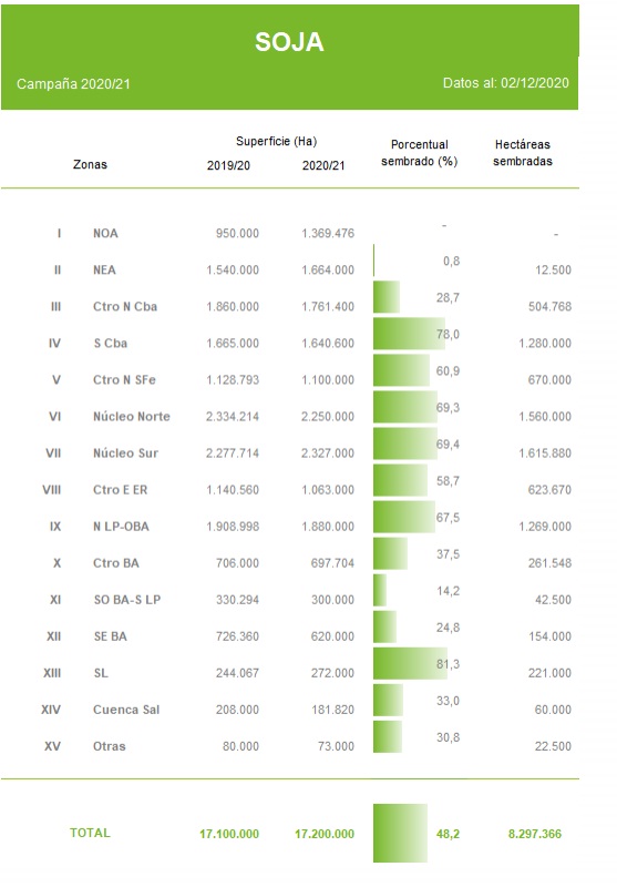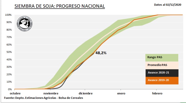 Con un avance intersemanal de 8,9 puntos porcentuales, la siembra ya cubre el 48,2% de las 17,2MHa proyectadas para la campaña 2020/21.