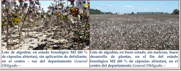 Se continuó aconsejando a los productores la necesidad del monitoreo de las trampas para picudos, en los lotes donde la etapa de floración estuvo llegando a su fin y en los que comenzaron las etapas de defoliación y recolección, para la posible captura de los insectos, en caso de presencia, disminuyendo así su población. Conjuntamente se concretaron aplicaciones de reguladores de crecimiento y defoliantes.