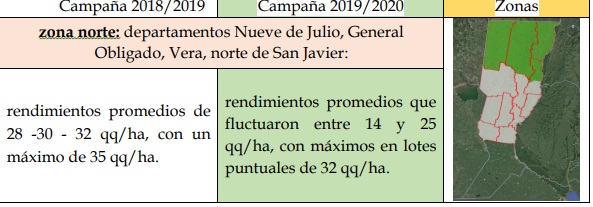 El sector centro norte de los departamentos del Nueve de Julio y General Obligado, fue el que manifestó el impacto de las condiciones climáticas y su diversidad, por ello los bajos a magros resultados obtenidos en dicha área, reflejándose más de lo esperado.
