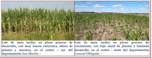Dada las etapas fenológicas de los cultivares y lo avanzado del ciclo, los indicadores enunciados en los distintos informes anteriores, como desarrollo foliar limitado, estructura de plantas medias a bajas, surcos no cerrados, lotes manchonados, poco uniformes y mortandad de plantas, no cambiaron y con ello la amplitud de los estados perduró.