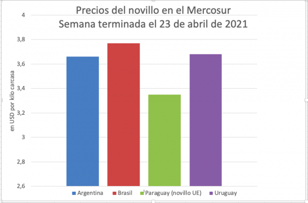 Paraguay: el novillo terminado apto para UE está a USD3,35, igual que la semana pasada. Los analistas consideran que el mercado de hacienda está firme.