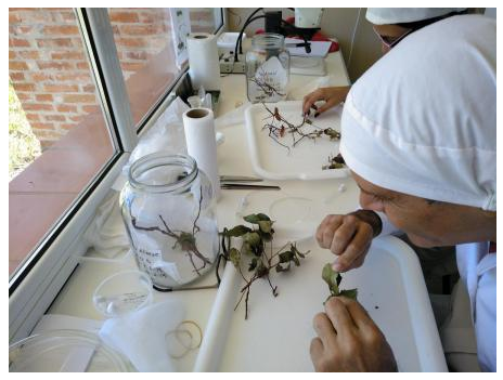 Trabajo en el sector de Cuarentena del Insectario de Investigaciones de Lucha Biológica, IMyZA- CICVyA