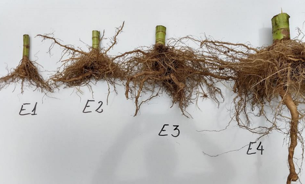 En las evaluaciones realizadas observaron que el 10% de las plantas presentan un escaso desarrollo tanto aéreo cómo radicular (E1), el 20% tuvo una mejor condición (E2), un 50% con buen desarrollo (E3) y el 20% de la superficie evaluada presentó una excelente condición aérea y radicular (E4)”.