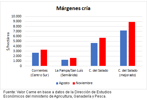Con los números cerrados a noviembre, en el caso de la cría, los resultados continúan recomponiéndose por el aumento del 13% para el ternero de invernada en un mes y costos que subieron en menor medida.