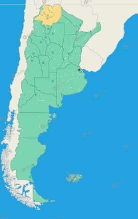 Jujuy: El Carmen – Ledesma – Palpalá – San Antonio – San Pedro – Santa Bárbara – Valle Grande – Zona baja de Doctor Manuel Belgrano – Zona baja de Tilcara – Zona montañosa de Doctor Manuel Belgrano – Zona montañosa de Humahuaca – Zona montañosa de Tilcara – Zona montañosa de Tumbaya – Puna de Cochinoca – Puna de Humahuaca – Puna de Rinconada – Puna de Santa Catalina – Puna de Tilcara – Puna de Tumbaya – Yavi – Puna de Susques
