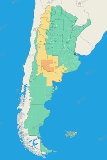 Buenos Aires: Costa de Patagones – Costa de Bahía Blanca – Costa de Coronel Dorrego – Costa de Coronel de Marina Leonardo Rosales – Costa de Villarino – Monte Hermoso – Norte de Bahía Blanca – Oeste de Patagones – Oeste de Villarino – Puan – Zona baja de Coronel Pringles – Zona baja de Coronel Suárez – Zona baja de Saavedra – Zona baja de Tornquist