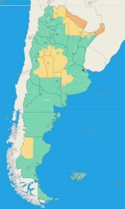 Buenos Aires: Bolívar – Carlos Casares – Carlos Tejedor – Hipólito Yrigoyen – Pehuajó -Adolfo Alsina – Daireaux – Guaminí – Pellegrini – Salliqueló – Trenque Lauquen – Tres Lomas – Florentino Ameghino – General Villegas – Rivadavia