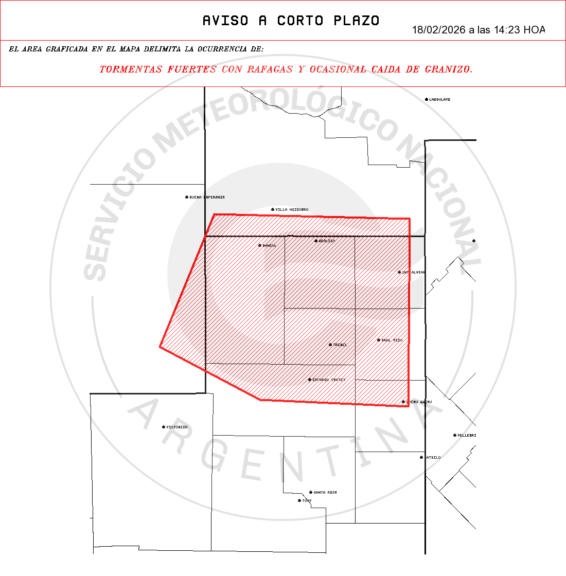 LA PAMPA: Chapaleufú – Conhelo – Maraco – Parera – Quemú Quemú – Realicó – Trenel.
