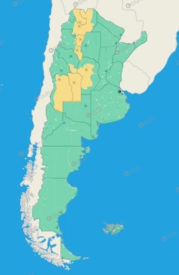 Tucumán: Burruyacú – Capital – Cruz Alta – Famaillá – Graneros – La Cocha – Leales – Simoca – Trancas – Yerba Buena – Zonas bajas de Chicligasta – Zonas bajas de Juan Bautista Alberdi – Zonas bajas de Lules – Zonas bajas de Monteros – Zonas bajas de Río Chico – Zonas bajas de Tafí Viejo