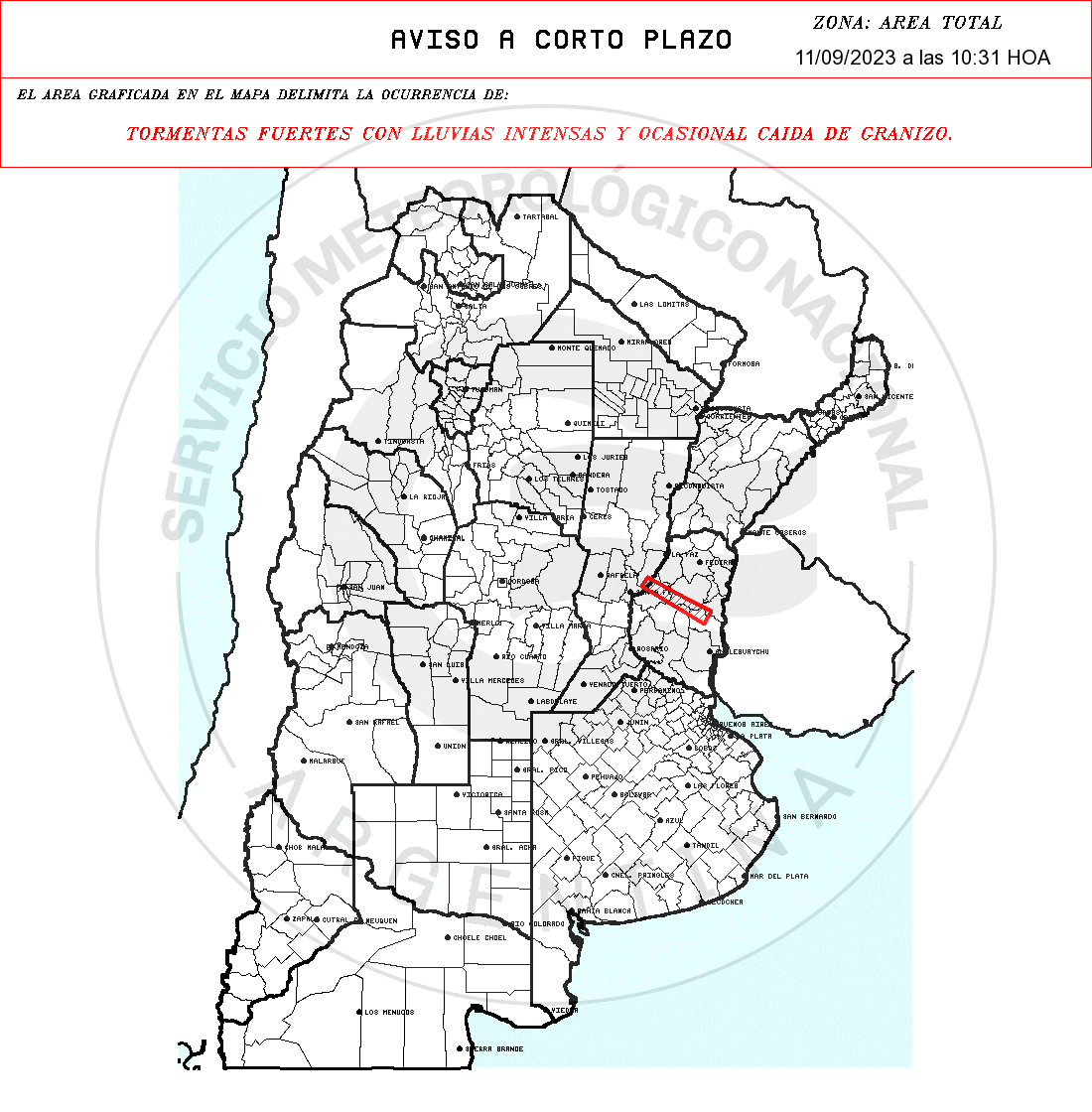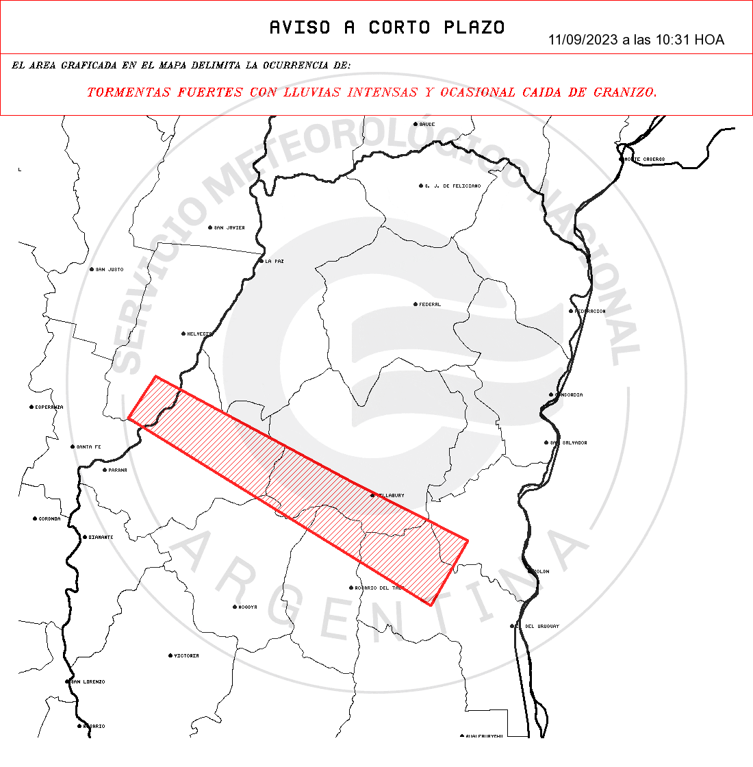 TORMENTAS FUERTES CON LLUVIAS INTENSAS Y OCASIONAL CAIDA DE GRANIZO.