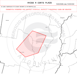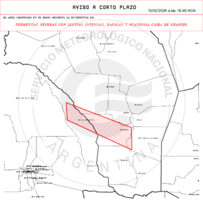 Se esperan lluvias abundantes en cortos períodos, viento intenso y caída aislada de granizo en las zonas bajo aviso.