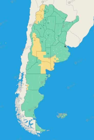 Buenos Aires: Costa de Patagones -Costa de Bahía Blanca – Costa de Coronel Dorrego – Costa de Coronel de Marina Leonardo Rosales – Costa de Villarino – Monte Hermoso – Norte de Bahía Blanca – Oeste de Patagones – Oeste de Villarino – Puan – Zona baja de Coronel Pringles – Zona baja de Coronel Suárez – Zona baja de Saavedra – Zona baja de Tornquist