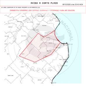 - Medidas de protección: 1- Retirá o asegurá objetos que puedan ser arrastrados por el viento. 2- Cerrá y alejate de puertas y ventanas. 3- No te refugies debajo de marquesinas, carteles publicitarios, árboles o postes. 4- Permanecé en construcciones cerradas como casas, escuelas o edificios públicos. 5- Mantenete alejado de artefactos eléctricos y evitá el uso de teléfonos con cable. 6- Si estás al aire libre, buscá refugio inmediato en un edificio, casa o vehículo cerrado. 7- Para minimizar el riesgo de ser alcanzado por un rayo, no permanezcas en playas, ríos, lagunas o piletas.