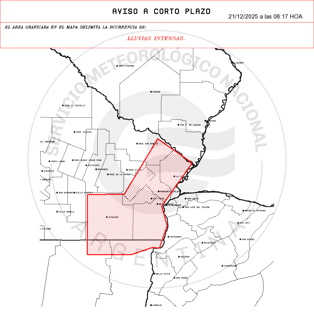 •  Zonas: CHACO: Gral Donovan – 1 de Mayo – Bermejo – Ldor Gral S. Martin – Libertad – San Fernando – Sargento Cabral – Tapenaga.