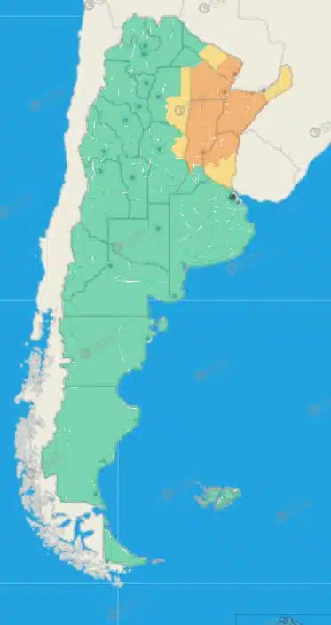Se activó alerta naranja por tormentas fuertes a severas con lluvias intensas y granizo. Se esperan acumulados de 60 a 100 mm —con picos superiores en forma puntual— que podrían provocar anegamientos y complicaciones en varias provincias.