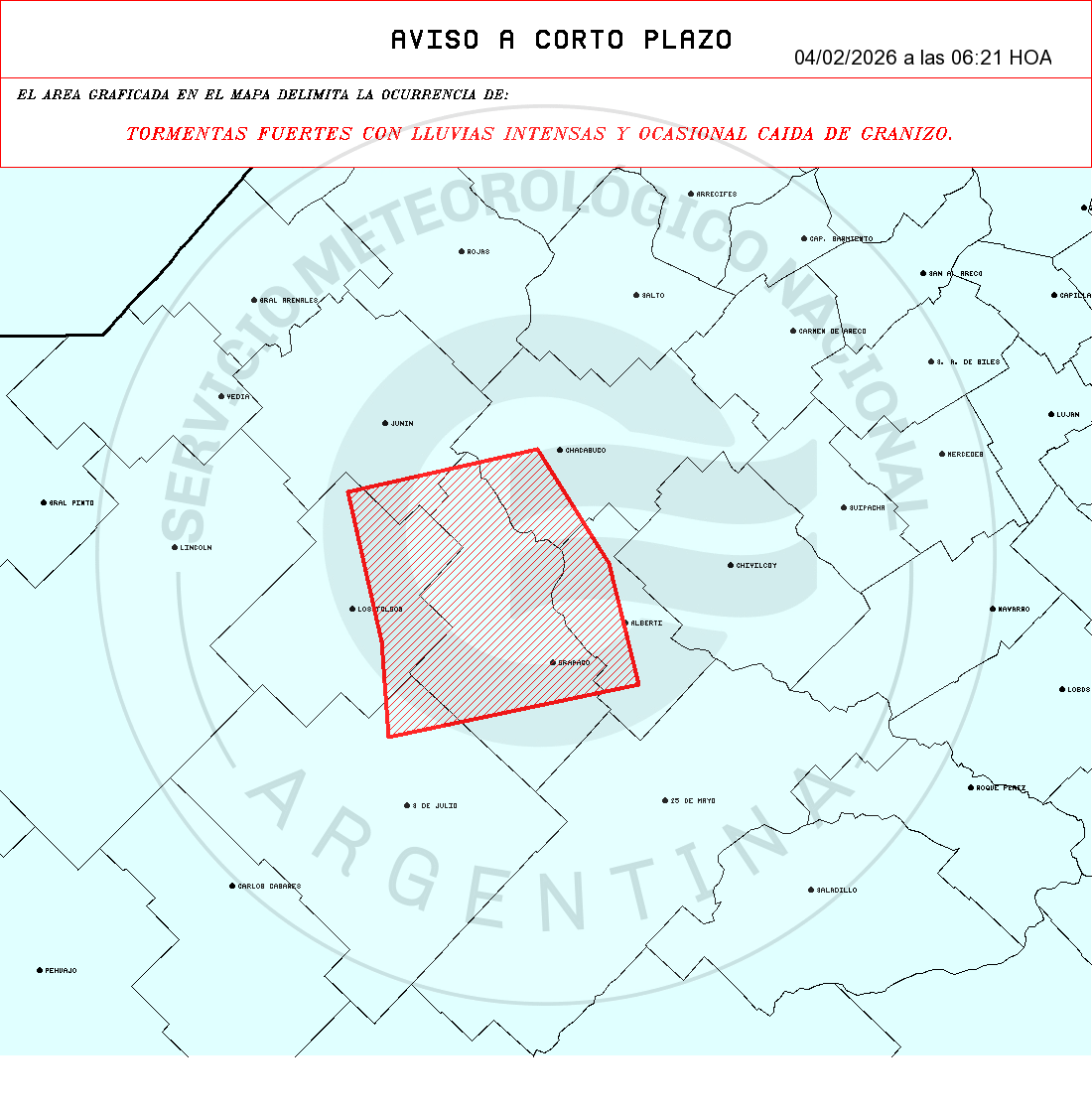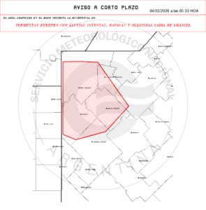 TORMENTAS FUERTES CON LLUVIAS INTENSAS Y OCASIONAL CAIDA DE GRANIZO.