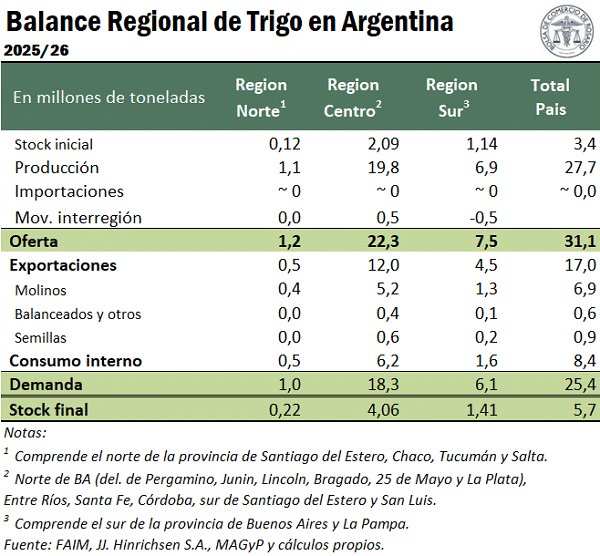 A esto se sumó una superficie sembrada que, sin ser récord absoluto, alcanzó el nivel más alto de los últimos 29 años, configurando una oferta inédita para la cadena triguera.