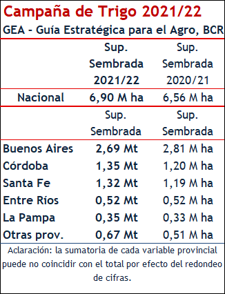 Hace un año atrás, en setiembre del 2020, la falta de agua se ensañaba el trigo Argentino y la proyección de producción bajaba a 18 Mt. Y hacia eso se dirigía el trigo 2021/22 por la falta de agua de los últimos 3 meses. Pero cambió todo: las lluvias llegaron a tiempo para gran parte del trigo de la región pampeana que retomará su crecimiento, casi sin sacrificar potencial de rinde en las principales provincias productoras. Hasta hace una semana atrás, en Buenos Aires se estimaban 150.000 ha regulares a malas, 180.000 en Córdoba y 100.000 en Santa Fe. Pero las lluvias llegaron a tiempo para revertir los efectos de la falta de agua y de las bajas temperaturas de fines de julio y principios de agosto.