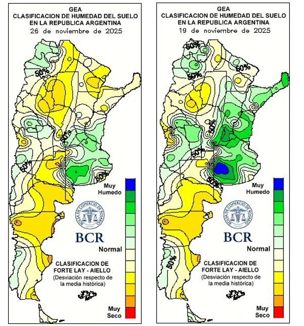 La estabilidad duraría hasta el sábado 29, cuando se prevé un nuevo episodio de lluvias generalizadas sobre la región. Según el consultor Elorriaga, los acumulados de diciembre podrían ubicarse en valores normales o superiores, aportando más agua a perfiles ya recargados.
