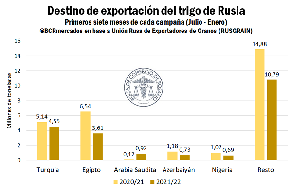 Turquía y Egipto mantienen año tras año el primer y segundo lugar dentro de los principales destinos del trigo ruso. Mientras Egipto acelera compras ampliando sus tenders de trigo, Turquía profundiza sus relaciones bilaterales con Ucrania. La semana pasada el país heredero del Imperio Otomano firmó una serie de acuerdos bilaterales con Ucrania, entre los que se incluye uno de libre comercio. No obstante, tales avances en las relaciones comerciales entre ambos países se dan en un contexto en el cual Rusia y Ucrania atraviesan importantes tensiones políticas. En este sentido, se presenta incertidumbre en la dinámica comercial que pueda desarrollarse entre los países de la región del Mar Negro bajo esta disputa de política internacional que tiene como epicentro al principal país exportador de trigo del mundo.