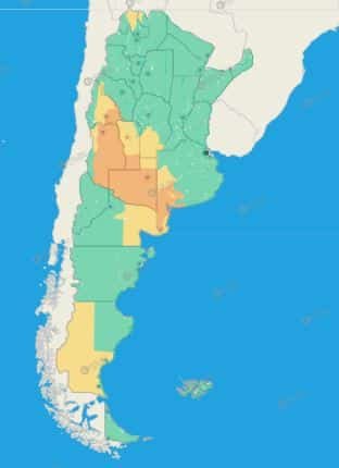 Buenos Aires: Costa de Bahía Blanca – Costa de Coronel Dorrego – Costa de Coronel de Marina Leonardo Rosales – Costa de Villarino – Monte Hermoso – Norte de Bahía Blanca – Oeste de Patagones – Oeste de Villarino – Puan – Zona baja de Coronel Pringles – Zona baja de Coronel Suárez – Zona baja de Saavedra – Zona baja de Tornquist