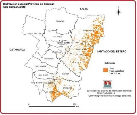 El laboratorio de Sistema de Información Territorial del INTA Famaillá determinó que la superficie total implantada con el cultivo en Tucumán durante la campaña 2017-2018 es de 199.377 hectáreas, a partir del procesamiento de imágenes satelitales con metodologías de teledetección y análisis de Sistemas de Información Geográfica (SIG).