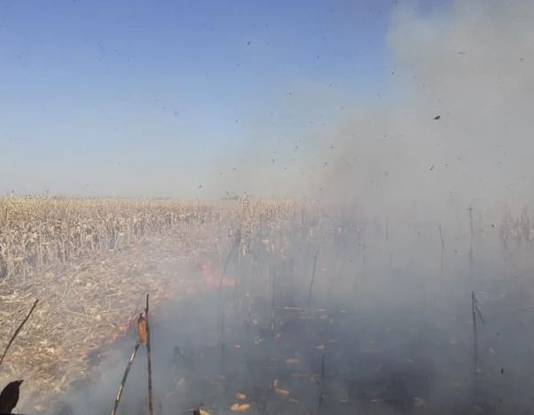 El fuego se habría generado, supuestamente, en una chispa que hizo la cosechadora que es con la que estaban trillando maíz en ese momento.Fuente: villamariaya.com