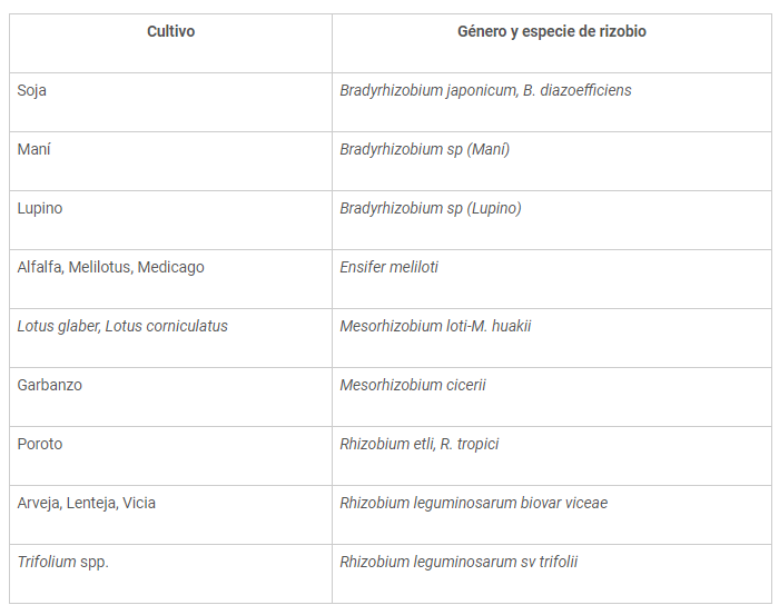 Los inoculantes son formulados que contienen microorganismos que contribuyen al crecimiento y la nutrición de las plantas. Algunos forman asociaciones con plantas de diferentes especies (ej. Azpospirillum sp.. Pseudomonas sp.) mientras que en el caso de los rizobios fijadores simbióticos de nitrógeno con leguminosas su relación es específica (Tabla 1). Además, estos inoculantes contienen cepas seleccionadas por su infectividad (capacidad de formar nódulos) y efectividad (capacidad de fijar el nitrógeno atmosférico).