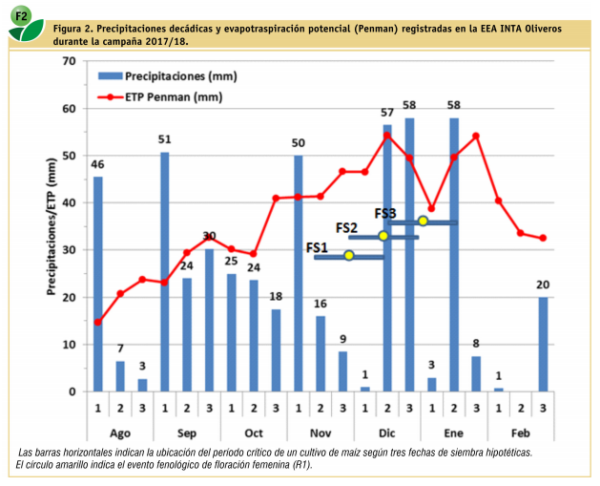 Debido a que la gran mayoría de la agricultura se realiza en secano, el logro de rendimientos satisfactorios depende del agua acumulada en el suelo y de las precipitaciones durante el ciclo del cultivo. A su vez, todos los cultivos tienen un período crítico donde se define la mayor parte del rendimiento. En maíz, el establecimiento de condiciones de stress hídrico durante el mes en torno a la floración puede reducir drásticamente el número de granos fijados y afectar el peso de los mismos. Las prácticas de manejo entonces, deben apuntar a acumular y preservar el agua útil en el perfil del suelo y colocar este período crítico del cultivo en situaciones que minimicen el riesgo climático de padecer un stress hídrico.