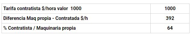 Como podemos observar en este cuadro de resultado, el valor que se paga a un Contratista supera el 60% del Costo propio, prácticamente en un año la Cooperativa si cumple las 1900 hs de uso se pagaría el tractor con la diferencia.